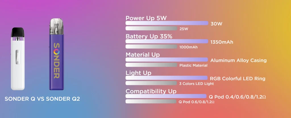 The Geekvape Sonder Q2 is compatible with all available Geekvape Q Pods. The Sonder Q2’s pod recognition adjusts the power output of the kit to the optimal wattage required for the installed pod.